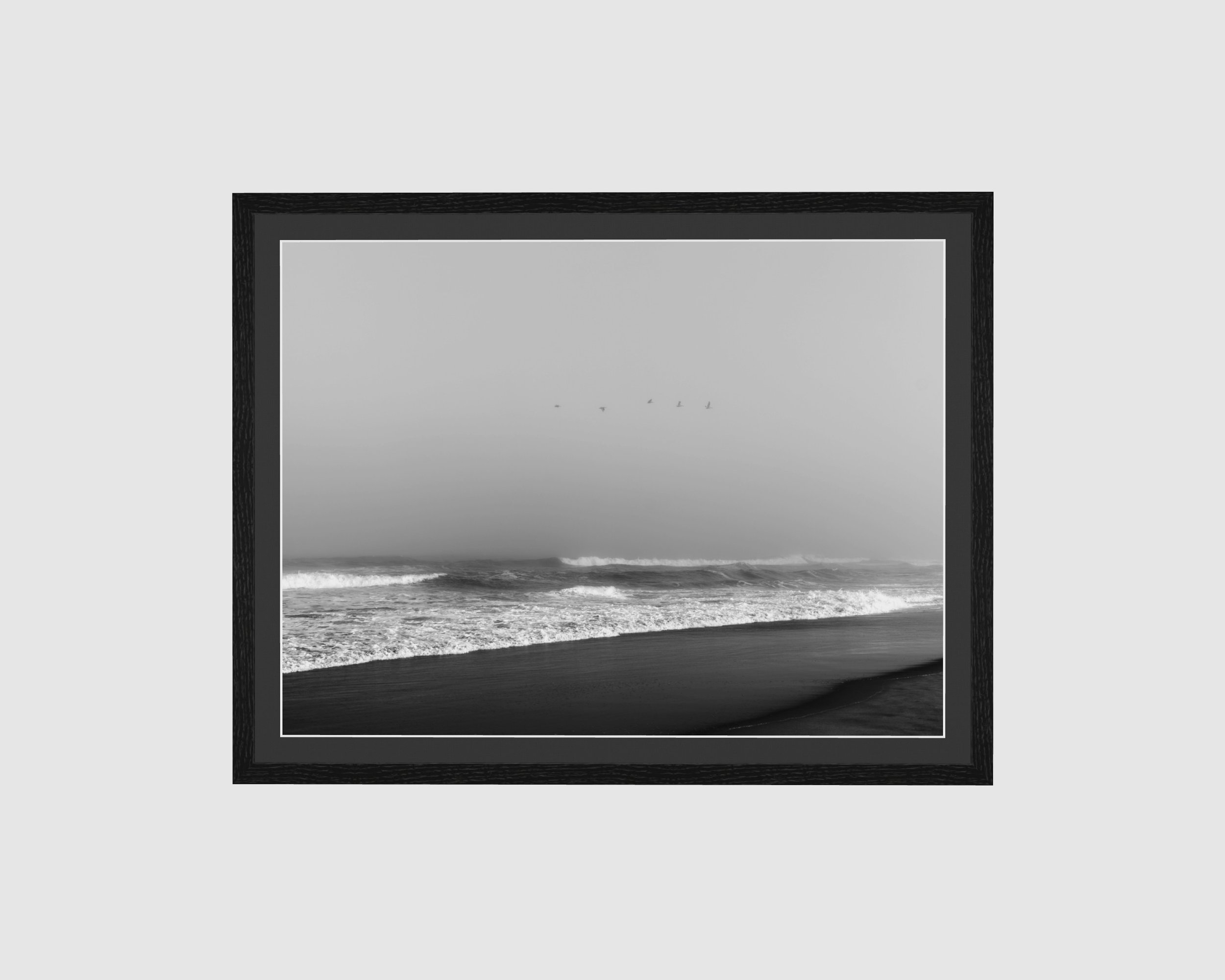 On a trip to Assateague Island when the weather was as spontaneous as my decision to visit the quaint area, I walk quietly along the shores gently soothed by the sound of ocean waves. Camera in hand, I look calmly & carefully at the beauty before me. Off in the distance just peaking through the fog I witness a rare moment of pelicans flying in unison above the water. Without thinking, I aim my lens at the scene an snap this one mystically alluring photograph. Years of experience allowed me to capture this scene’s essence which only lasted 4-5 seconds. I’m grateful to share this timeless piece with you.