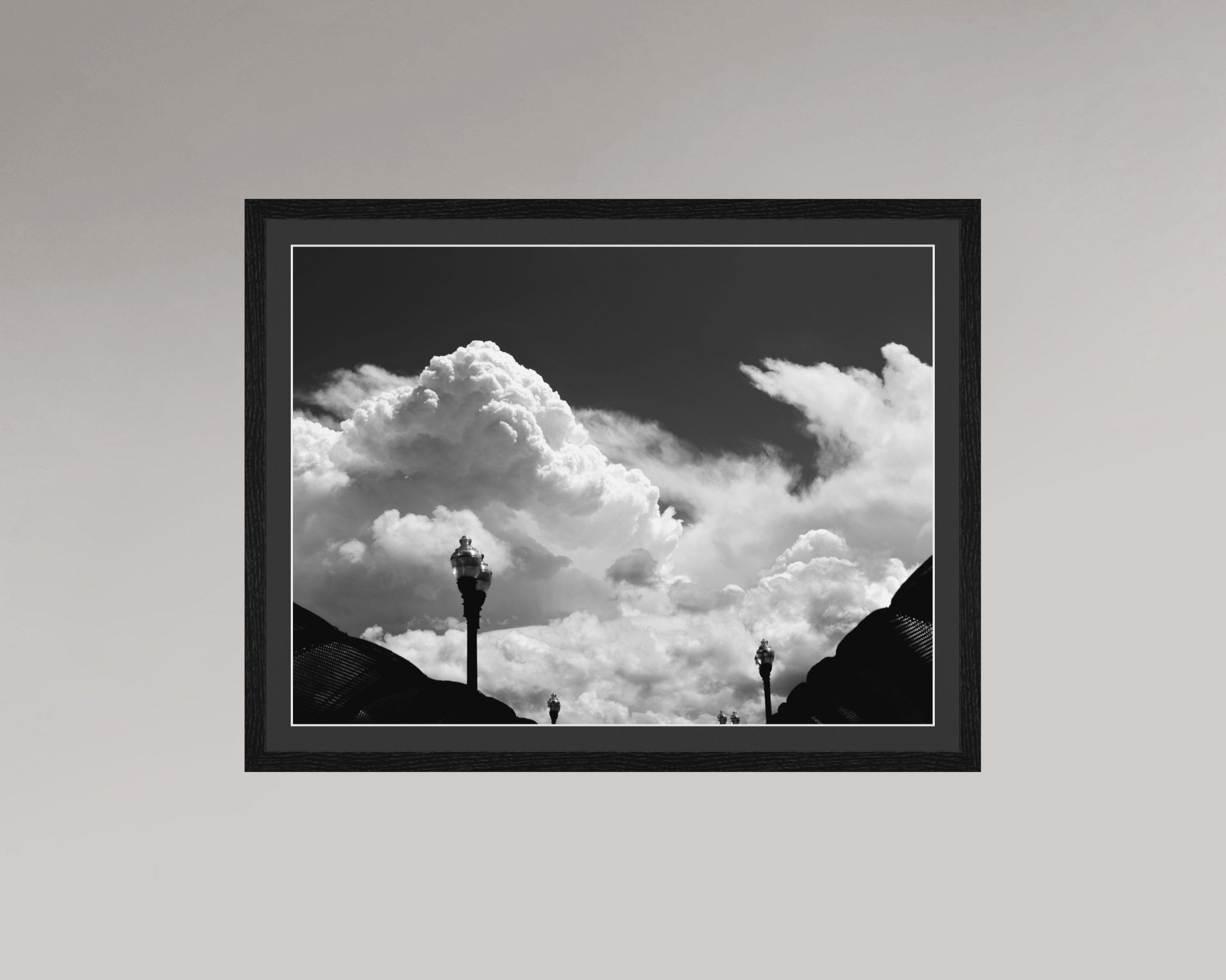 Driving through the streets enjoying a hot Summer’s day, I felt the gravitational pull of these enormous clouds grab my attention. For many years I’ve had the desire to photograph the weightlessness & power of storm formations such as these. On this day, I made the most of the opportunity as I parked my car, & proceeded to the best place to capture them. A walkway which directs pedestrians across a bridge provided the best angle. Its metal gates & streetlights illustrate by contrast how large & how far away the clouds expressed themselves. I was humbled by their size & grateful to create an image of this sublime location.